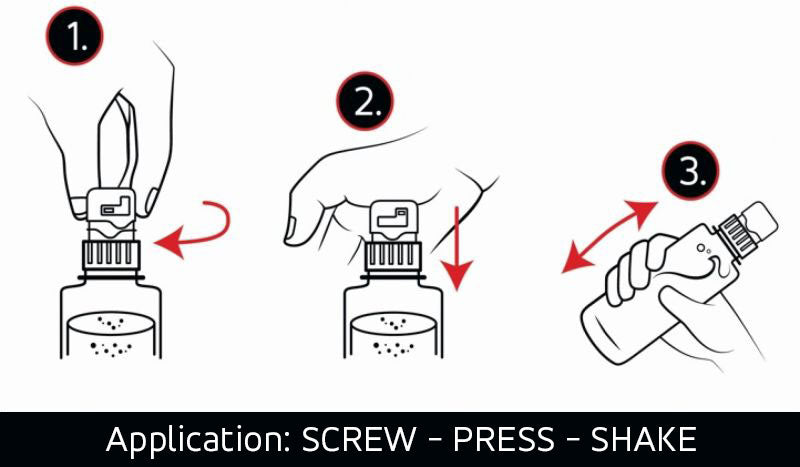 3. Then reseal the bottle and shake vigorously for about 10 seconds. Now the drink is ready to consume and activated for rapid recovery – for you and your cells! With this technology, it's crucial that the liquid is mixed with the water with vigorous shaking; simply stirring isn't enough!